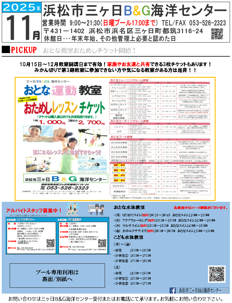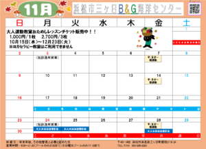 (月~土曜日) 9:00~20:50まで遊泳可能 (21:00更衣室完全退館)