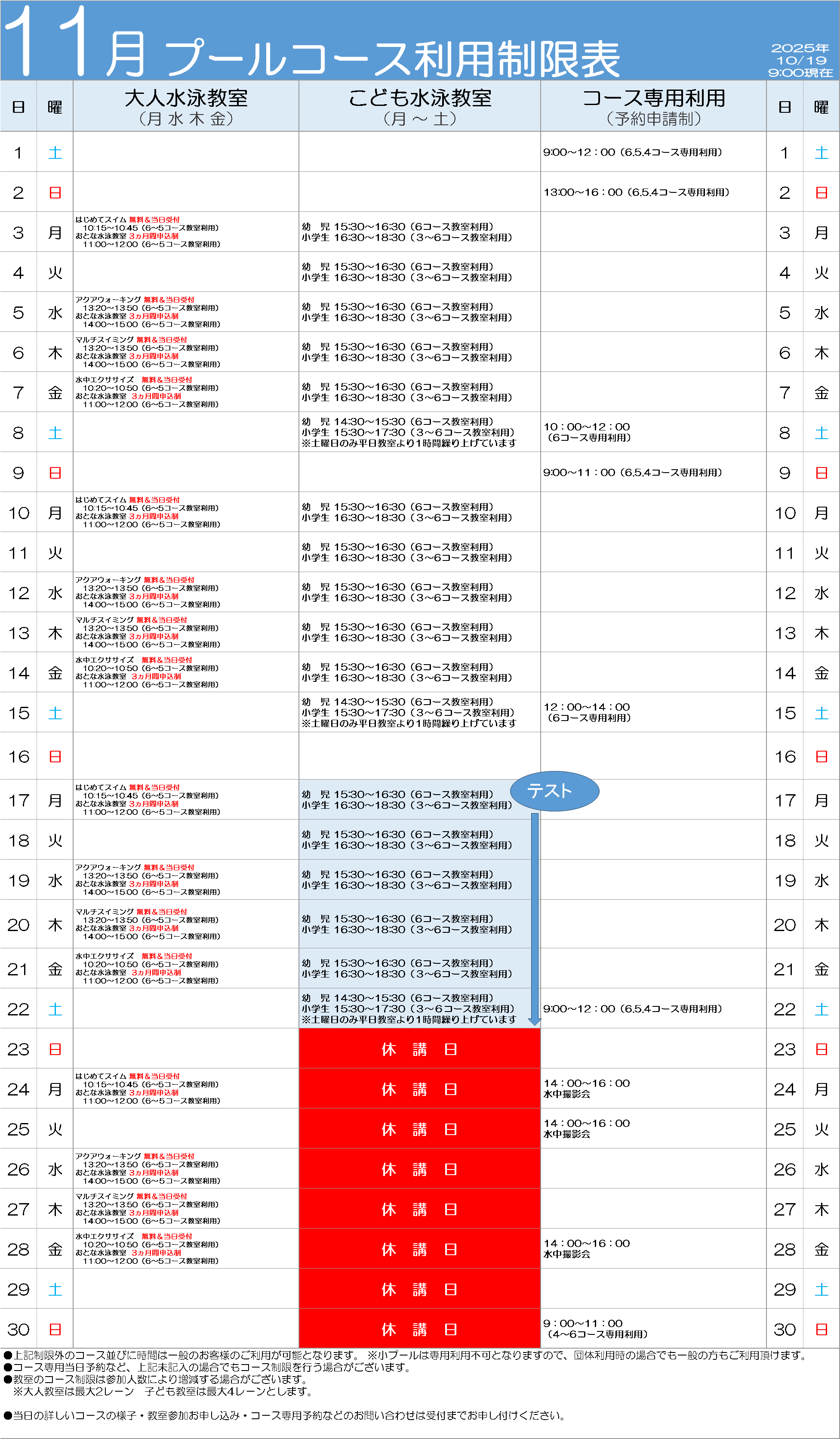 【施設日程】